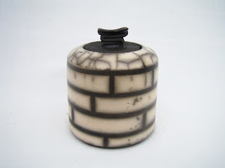 Raku est une technique orientale qui consiste en enlever les pièces incandescentes du four, les mettre en réduction de température les impliquant dans des pailles, la sciure de bois, ou d'autres produits bio et, finalement, les refroidir dans l'eau. Dans raku nu les pièces sont impliqués dans l'argile liquide avant le glaçage et quand on les sort du four, pendant la réduction de température, elles 'déshabillent' la couche extérieure apparaissant les effets de la fumée de la combustion des produits bio.