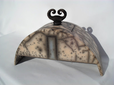 Raku is an oriental technique that consists of removing the incandescent pieces from the kiln, put it in temperature reduction involving it in straws, sawdust or other organic products and, finally, to cool it in water. In naked raku pieces are involved in liquid clay before glazing, and when it leaves the oven, during the temperature reduction, it 'undresses' the outer layer emerging the effects of smoke produced by the organic products in combustion.